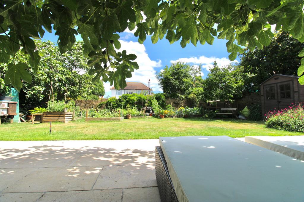 Outside, the rear garden is a serene haven, enclosed by walls and thoughtfully landscaped with a lush lawn, mature fig trees, and a limestone patio perfect for summer living. A hot tub and outdoor shower add a touch of luxury, while the south-facing orientation ensures plenty of sunshine. At the front, there is generous off-street parking for multiple vehicles.