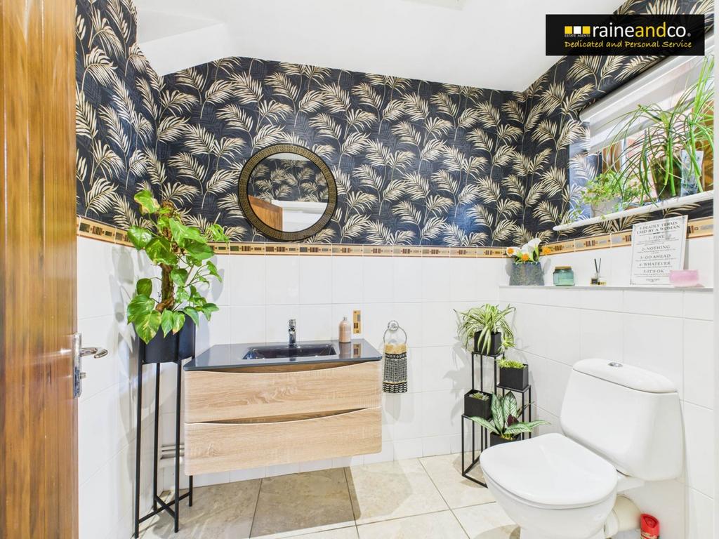 This charming ground floor w.c. offers convenience and practicality for residents and guests alike. Featuring a modern design with sleek fixtures and fittings, this compact yet functional space is perfect for quick visits. The neutral colour scheme and ample lighting create a bright and welcoming atmosphere. Situated just off the main entrance, this w.c. is easily accessible for all visitors.