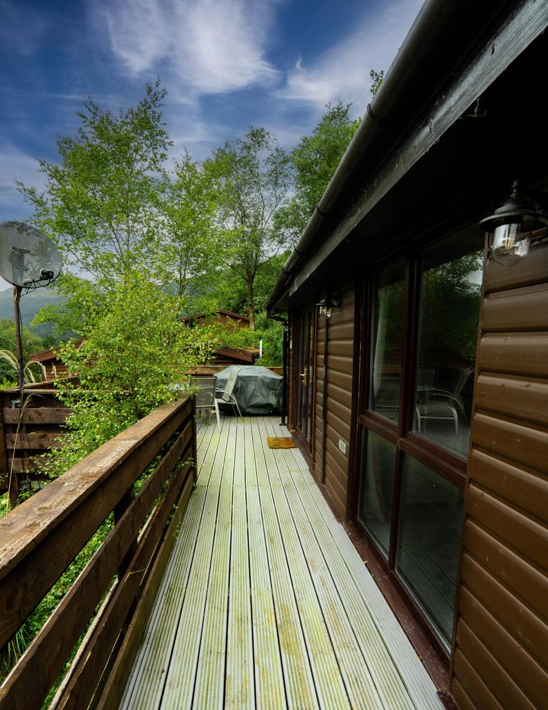 A couple of steps take you to the decking at the front of the chalet and to the entrance door, which opens directly to the living accommodation.