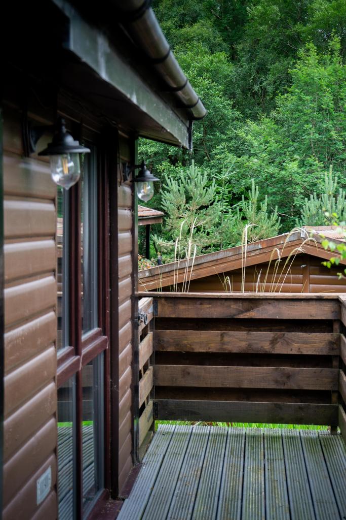 The chalet has a private decking at the front with stunning country views and has a small amount of land and a timber storage shed at the side.
