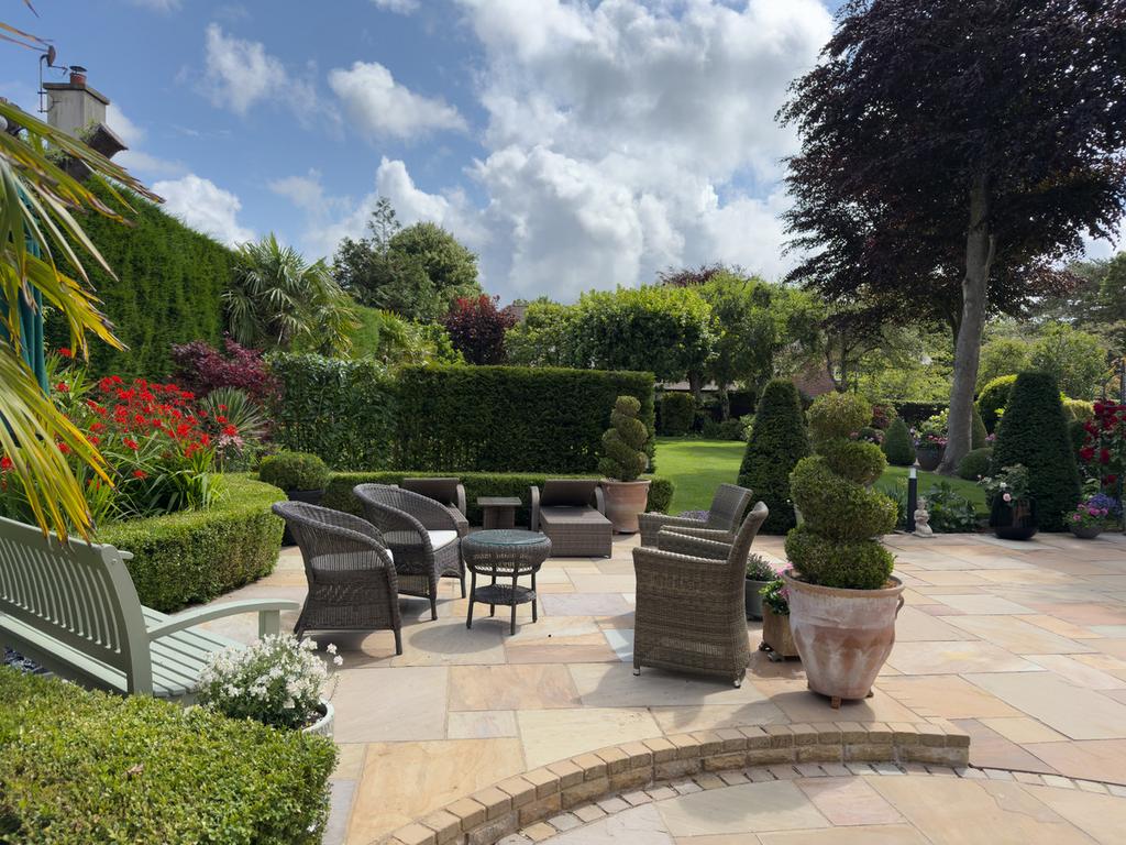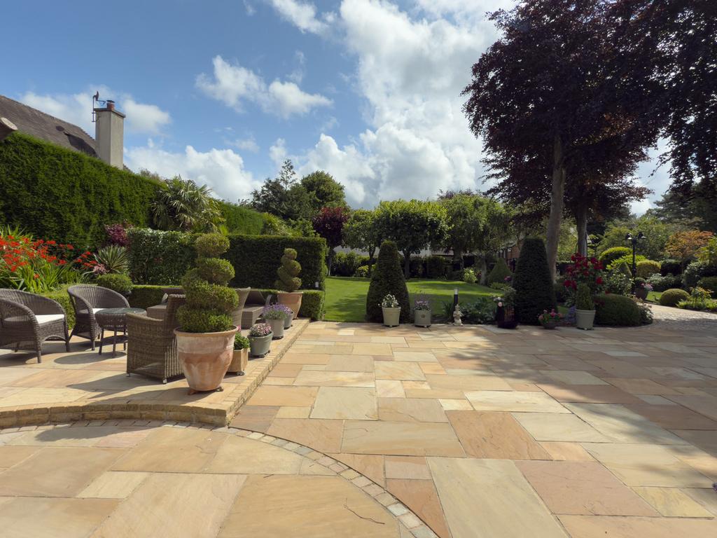 Set behind secure gates, the property is approached via an immaculate award-winning front garden, beautifully landscaped with mature trees, manicured lawns, and thoughtfully arranged seating and patio areas - a private and picturesque welcome to the home.