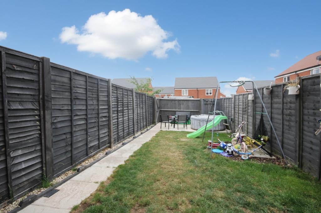 The rear garden is generally laid to grass with patio area to rear and enclosed by timber fencing. Built-in lean-to storage to side, gated pedestrian access leading to two allocated parking spaces at the rear.