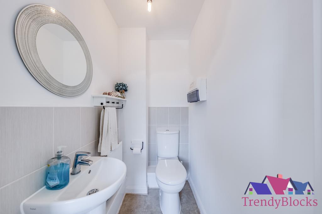 As you enter through the front door, you're greeted by a light-filled hallway that flows naturally through the heart of the home. To the left, a bright and spacious living room offers the perfect setting for relaxing or entertaining guests. Next to the stairs, you'll find a modern ground floor WC, ideal for family and visitor convenience.