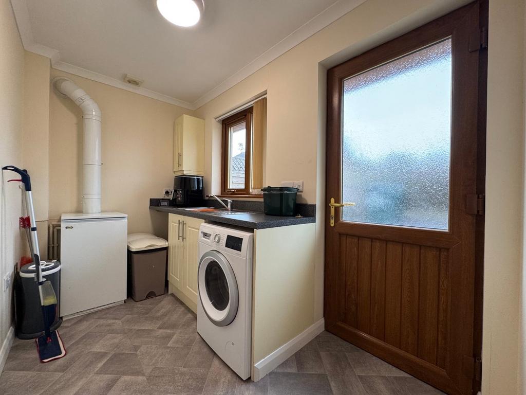 10' 4" x 5' 5" (3.15m x 1.65m) with range of base units housing a Grant oil boiler, stainless steel sink and drainer with mixer tap, rear window and door to garden.