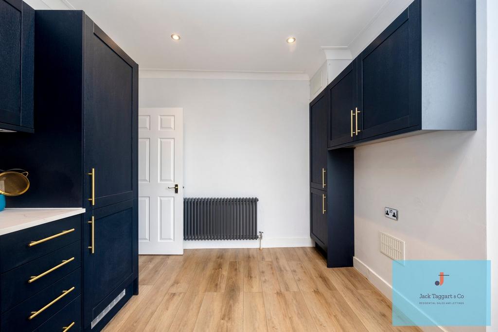The separate kitchen is a true highlight of the home. Bright and generously proportioned, it boasts an abundance of storage with wall and base units, extensive worktop space, and room for a family-sized dining table. Dual-aspect windows ensure the room is filled with natural light throughout the day, creating a welcoming and functional environment for cooking and dining.