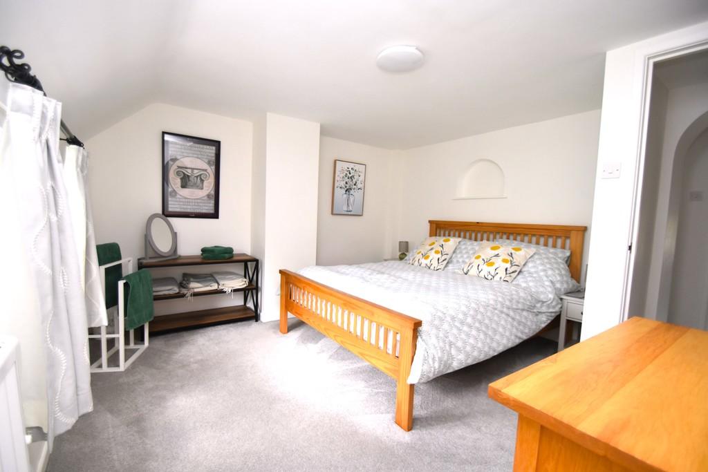 Bedroom 1 15' 9" (reducing to 9' 2") x 12' 0" (4.8m x 3.66m) (Front Aspect) Built-in wardrobe, small display arch, hatch to loft, thermostatically controlled electric radiator, carpet.
