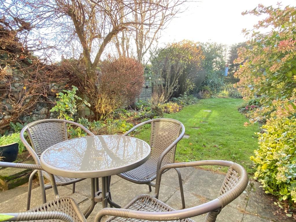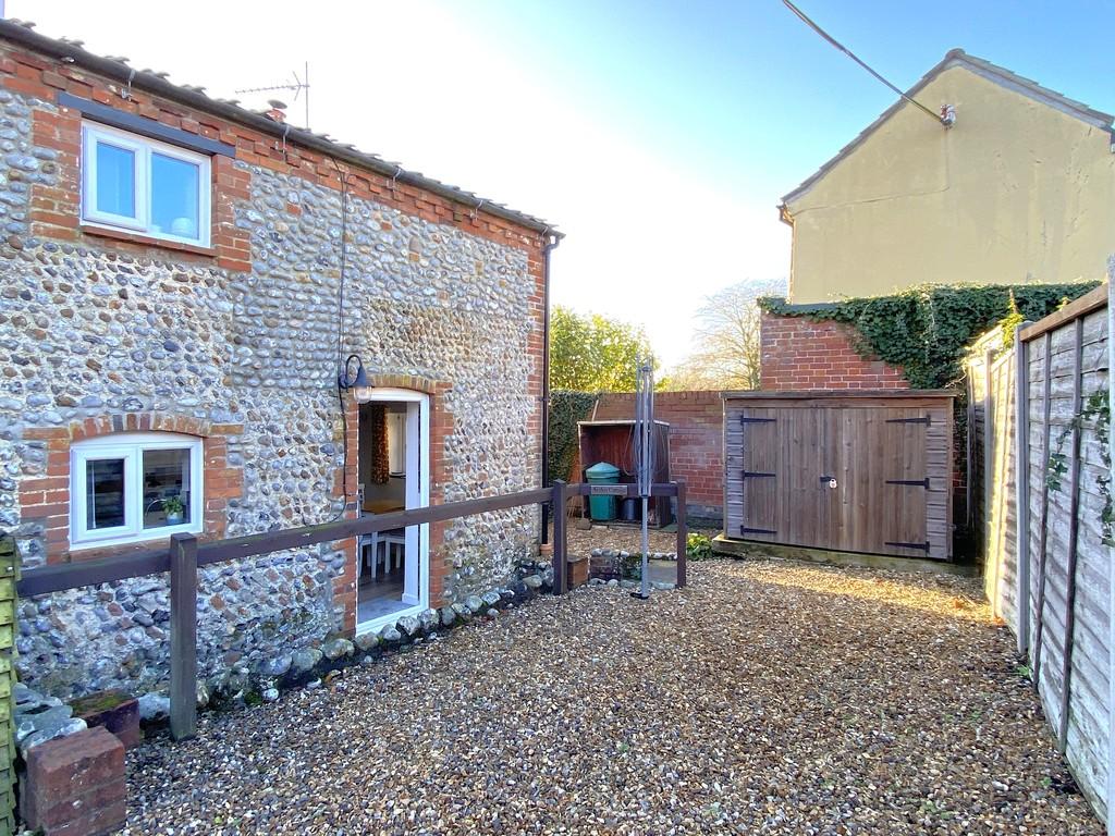 Outside The property is approached over a driveway edged with wild flowers which provides off road parking for up to two vehicles, please note that there is vehicular right of way for the neighbours to access their parking. A picket fence with gate then leads to a very attractive south facing garden, laid to lawn in a curved strip alongside which are very beautiful deep borders planted with a wide variety of flowers, shrubs and trees. The garden is enclosed by fencing. Stepping stones through the lawn lead to a paved patio area immediately in front of the property. A gate at the side leads to a gravelled path along the left-hand side of the property which gives access to the rear garden. Immediately to the rear of the property is a paved and gravelled area with brick and flint retaining walls. The higher level is laid to gravel with shed and space for a rotary dryer together with off-road parking for one vehicle.