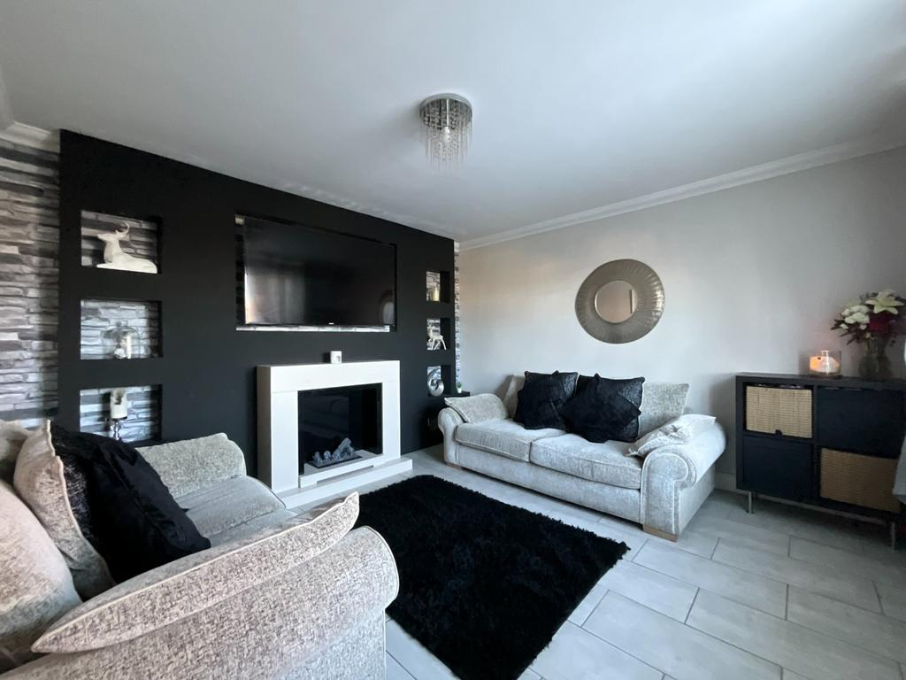 Features: UPVC double glazed bow window, feature fireplace, media wall, tiled floor.