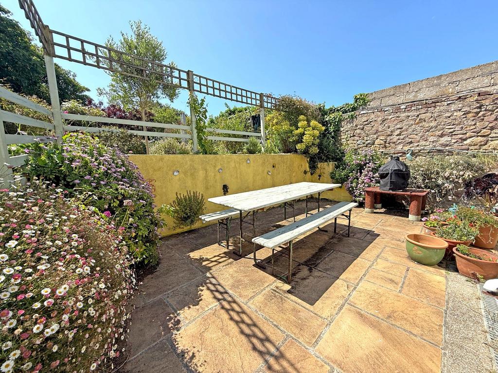 Upstairs, the first floor offers two spacious double bedrooms and a family shower room. The second floor provides two additional bedrooms and a second bathroom, ideal for guests, children, or flexible home office space. The rear garden is a true highlight, beautifully landscaped over two levels, with mature planting offering a tranquil outdoor retreat. A characterful stone outbuilding adds charm and utility, while the garage and driveway accessed from the rear provide off-street parking.
