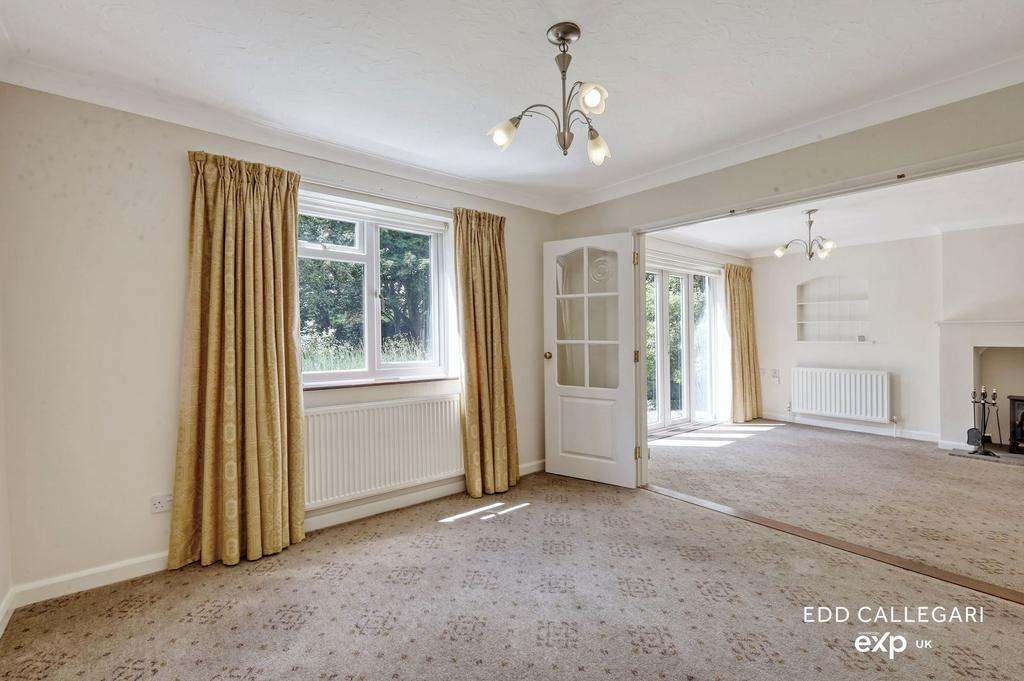 Ground Floor: A generous entrance hall welcomes you into the home, providing access to both the main residence and the utility room, which serves as a vital link between the primary living space and the self-contained annexe. An inner hallway leads to the principal ground floor accommodation. The recently updated kitchen is both stylish and highly functional, featuring an array of shaker-style units, a Bosch double oven, and a Neff induction hob. The living room extends the full length of the property and flows seamlessly into the open-plan dining area, creating an ideal space for entertaining. A wood burning stove adds a cosiness to the space, ideal for the chillier months. French doors open onto a rear patio, enhancing the indoor-outdoor living experience, while internal wooden doors offer the option to separate the dining and living areas. The utility room also houses a convenient downstairs cloakroom, further adding to the property's practicality.