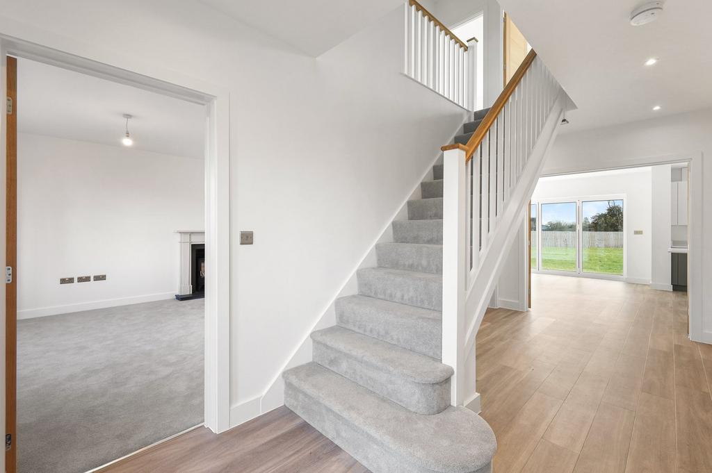 Plot 29 at Asterwood with LARGE GARDEN. A five bedroom home with spacious, versatile accommodation to suit family activity, personal relaxation, home working and hospitality. The heart of the home is the open-plan kitchen/dining family area with glazed bi-folding doors opening out onto the rear garden. Its beautiful kitchen includes a serving/breakfast island and a separate utility room with outdoor access. Double doors lead through to the generous dual-aspect living room with feature log burner fireplace, while across the hall you’ll find a dedicated dining room for relaxed dinner parties. Upstairs, the principal bedroom features a walk-in dressing area and a luxury En-suite – while three further generous double bedrooms, a single bedroom and a luxurious family bathroom completes the home.