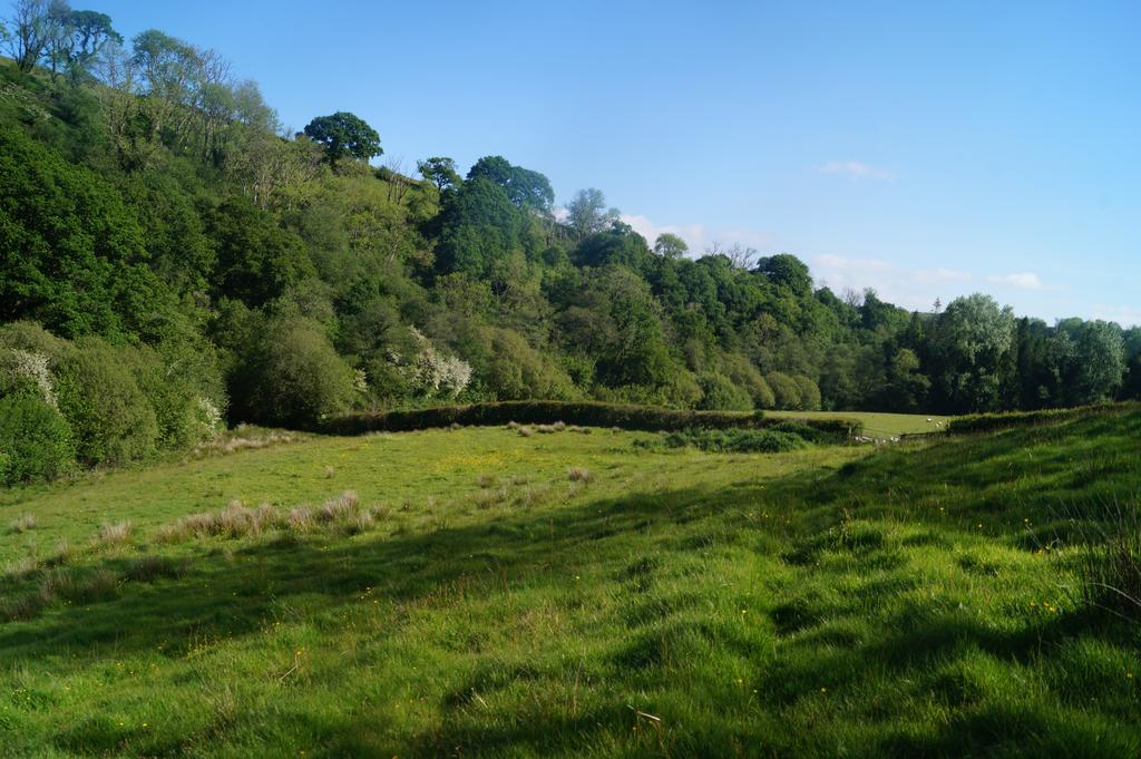 The block is divided into two enclosures, both fronting onto the district road. The first field is predominantly gently sloping and down to pasture in good heart and the second field is more sloping, as it climbs up the valley basin but is generally accessible to tractors etc. and suited more for grazing. A triangular shaped area of mature woodland lies along part of the Northern boundary in that parcel. The ‘Nant Ring’ stream flows along the whole Northern aspect of the block’s boundary.