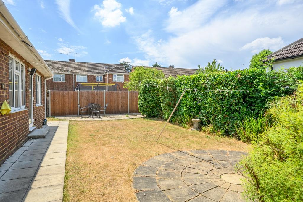 Martin Flashman & Co are delighted to offer for sale this rarely available detached bungalow, quietly positioned in a sought after cul-de-sac in the heart of Hersham Village. Immaculately presented throughout and offered with no onward chain, this charming home features well proportioned accommodation comprising an entrance hall with built in storage, a spacious 20ft living room with fitted air conditioning and direct access to the garden, and a modern kitchen with a range of units, integrated appliances, and a door to the outside. There are two double bedrooms and a bathroom with a contemporary white suite. Outside, a block paved driveway leads to the garage with an electric roller door, while the secluded rear garden offers paved patio areas, perfect for relaxing or entertaining. Additional benefits include double glazed windows throughout. Viewings are highly recommended and can be arranged by contacting the vendor’s sole agent.