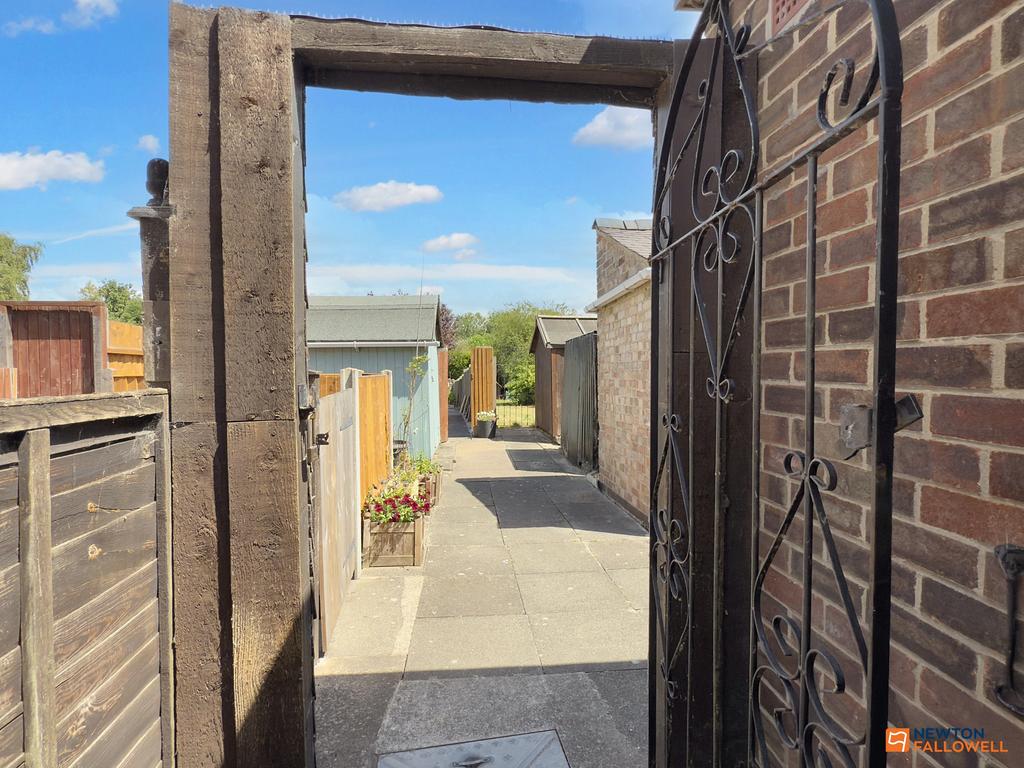 • Outdoor Spaces: To the front, a quaint small garden with a wall and gated access leads to the front door. At the rear, a practical courtyard area provides access to a storage shed and bin storage, with a further wooden gate opening to the expansive garden.