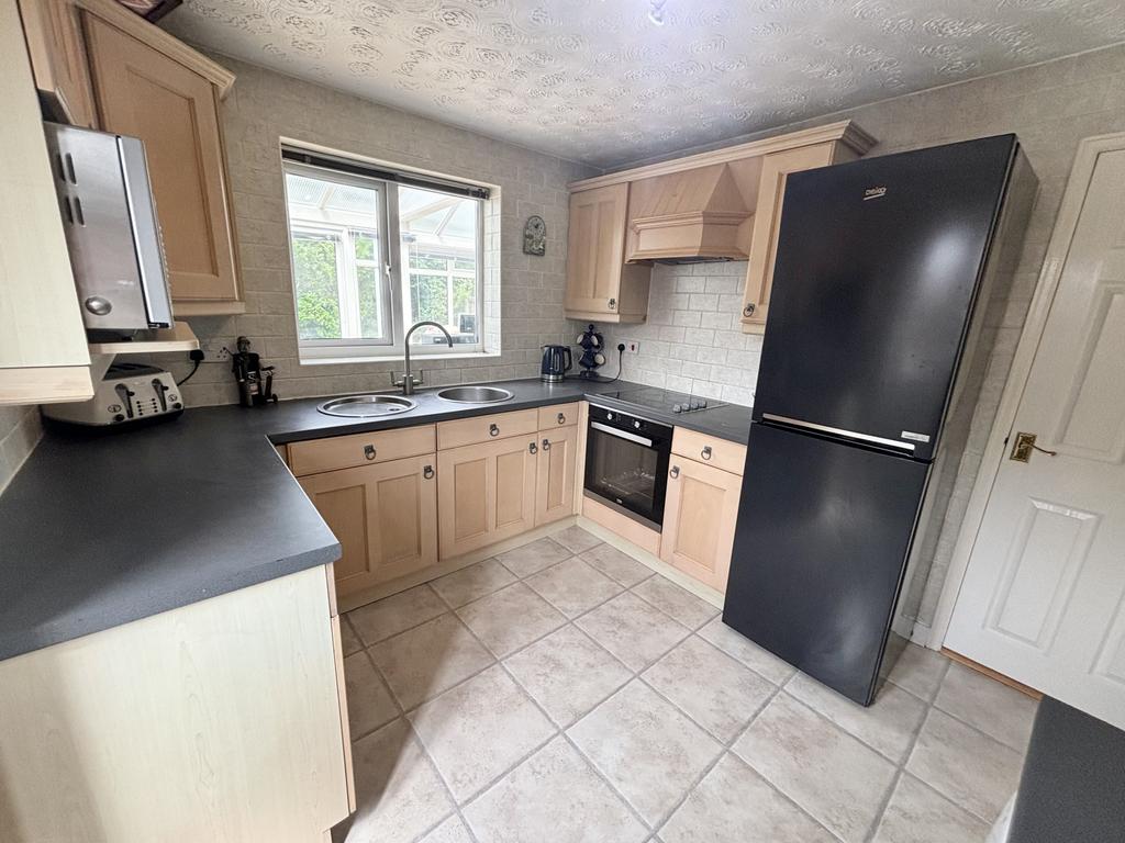 UPVC double glazed window to the rear aspect, fitted kitchen comprising of; wall and base units, work tops, space for fridge freezer, integrated oven and hob with extractor fan over, stainless steel sink and drainer with mixer tap, plumbed for washing machine and dryer, wall mounted combi boiler, fully tiled walls and floor, wall hung radiator and door leading into garden.