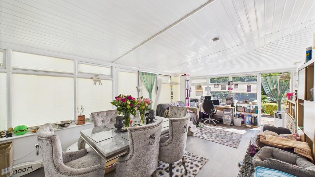 CONSVERATORY: 24' 01" x 13' 00" (7.34m x 3.96m) Glazed door to side, TV point, two radiators, French doors to rear, the roof is lined to provide insulation in winter while deflecting heat in the summer.