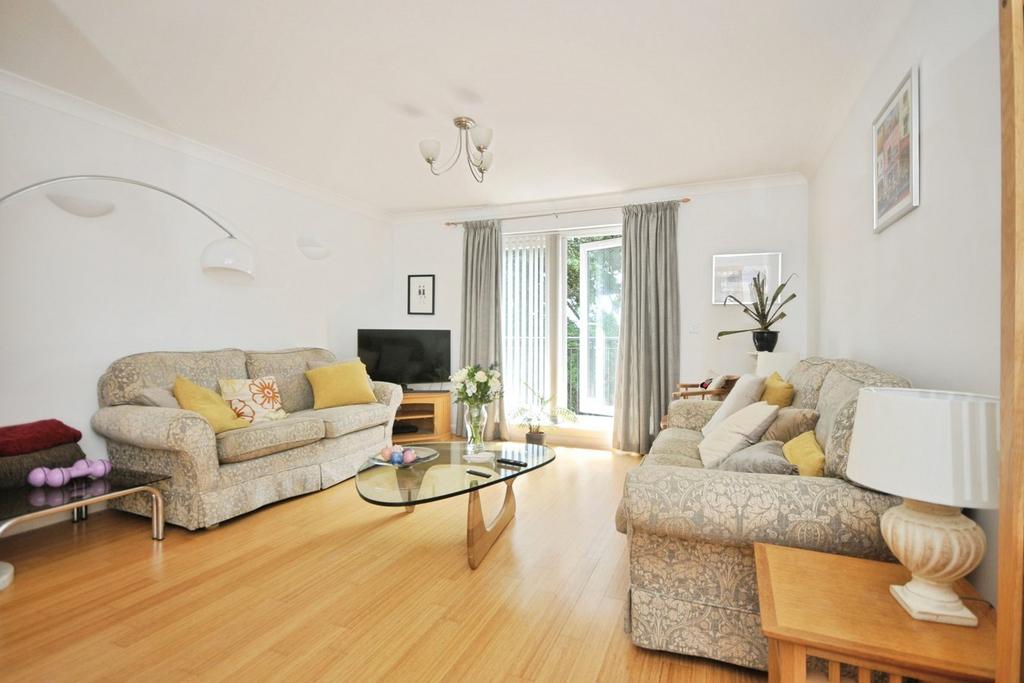 Living Room - A bright and spacious room offering generous space for furniture for a range of uses, with a double glazed window providing ample natural light, laminate flooring, and french patio doors leading to a balcony.