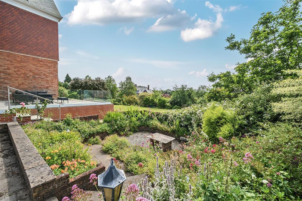 Outside - The property enjoys a private gated entrance, opening onto a sweeping, tree-lined driveway flanked by formal lawns. Designed with both privacy and practicality in mind, the grounds feature a sun terrace with sleek glass balustrades, vegetable plots, and beautifully maintained walled gardens. Additional highlights include a double garage with an internal workshop area and extra storage facilities, a working well, perfect for watering the gardens, a delightful tree house, and a historic air-raid shelter that adds a unique touch of character. There’s ample off-road parking for 8+ vehicles, with space to accommodate larger vehicles, and rear gated footpath access to Windmill Hill, ideal for scenic walks or quick local connections. A collection of outbuildings including generous greenhouses completes this impressive and distinctive outdoor setting.