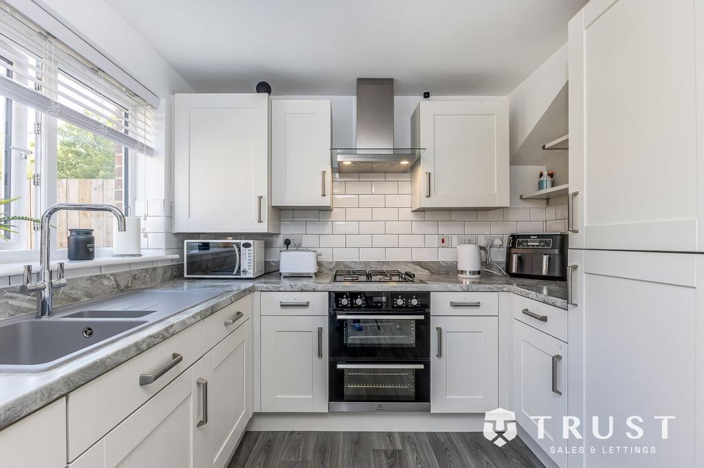 Welcome to this wonderful family home, a spacious 3-bedroom, 2-bathroom property that offers the perfect blend of comfort, style, and functionality. As you approach the house, you are greeted by a driveway with an EV charger, ensuring convenience and practicality for modern living. This property boasts a completed vendor chain, giving you peace of mind throughout the purchase process, along with the added security of a remaining NHBC warranty. The house has been significantly upgraded from its original specification, with attention to detail evident in every corner. The fully integrated kitchen is a focal point, providing a sleek and modern space for culinary enthusiasts. Situated on a sizeable plot, the property benefits from a generous garden, creating ample outdoor space for relaxation and entertaining.
