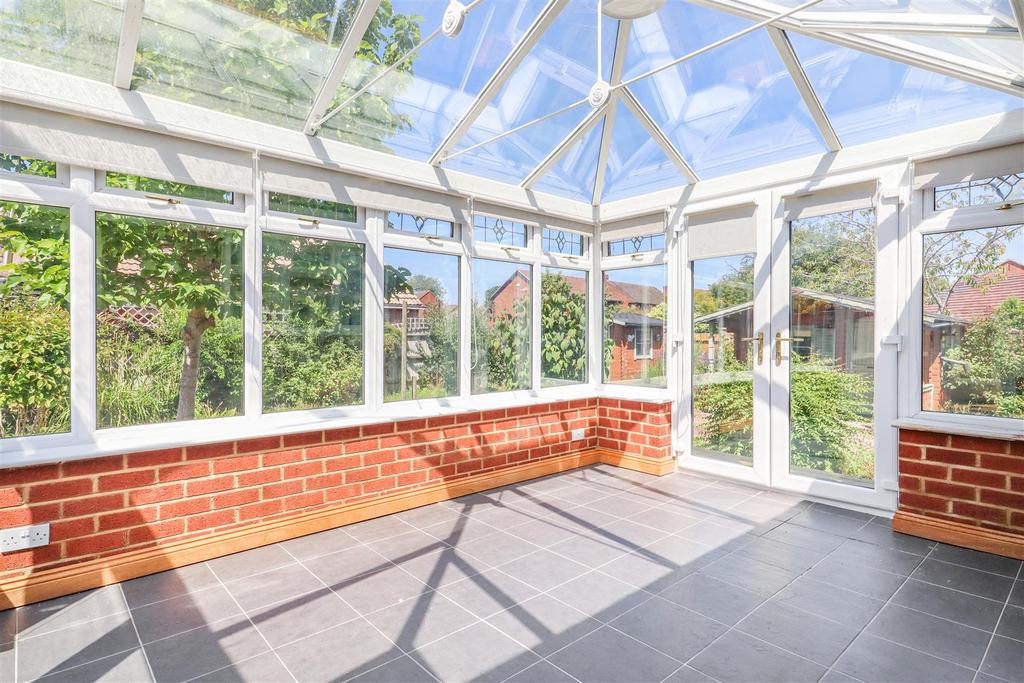 Garden Room/Conservtory - Featuring dwarf walls, UPVC double glazed windows, and a reinforced glazed roof, this space includes French doors leading to the garden and a ceramic tiled floor.