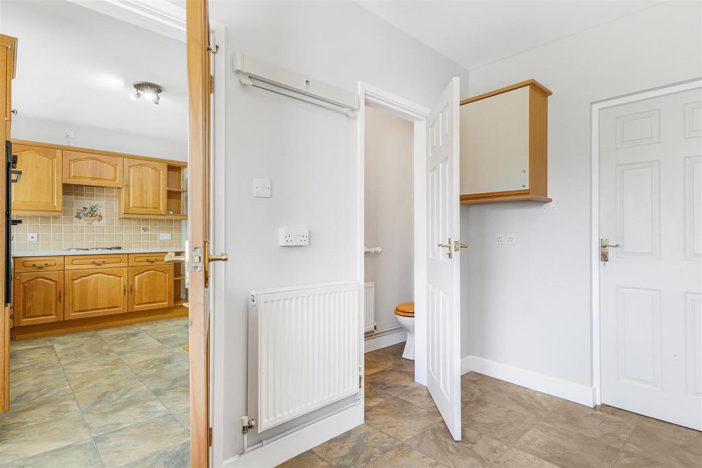 Utility Room - Spacious utility room with a extensive range of matching base and wall units with wood grain effect rounded edge work surfaces with single drainer stainless steel sink with chrome mixer tap, space and plumbing for washing machine, ceramic tiling to splash back, click laminate flooring, double glazed window to rear, door to garage and door to