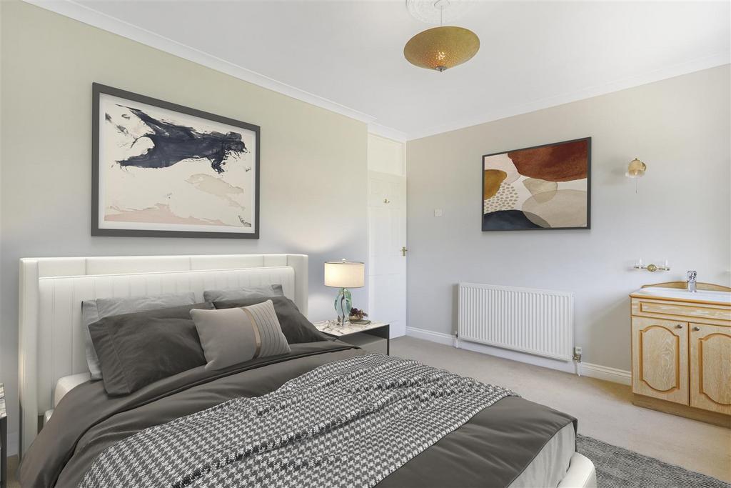 Double Bedroom Two - There is a double-glazed window to the rear, two wall light points, a vanity wash basin with a cupboard below, a radiator, a ceiling light, and coving.