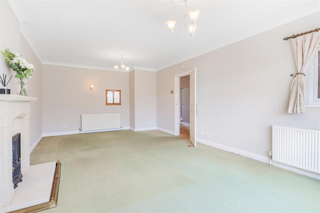 Living/Dining Room - This room features a large picture window at the front, along with a stylish living flame effect coal gas fire that has a composite stone surround and brass trim. It also includes two wall light fixtures, two radiators, and a smoke alarm. Additional features are the coving and a service hatch leading into the kitchen.