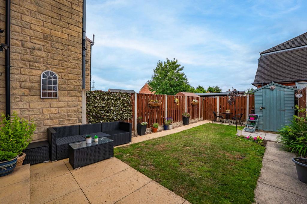Another generously sized double bedroom, offering fully fitted carpets, a wall-mounted radiator, TV point, and a rear facing window that frames views of the rear garden.