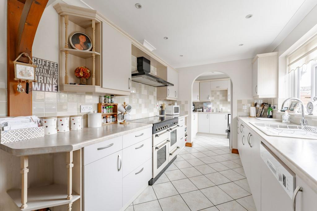 Internally, the accommodation, excluding the garage, extends to just under 2,000 sqft and is arranged over two well-planned floors. The wide entrance hall gives an immediate sense of space and leads to a ground floor WC, a versatile playroom or home office, and a spacious 19ft dual aspect living room with a gas fireplace – perfect for relaxing or hosting guests. To the rear, the remodelled kitchen/diner is a highlight of the home, flowing into a garden room with access to the rear garden. A separate utility room links to the kitchen. Additionally, the entrance hall provides access to the double garage, offering excellent functionality for day-to-day living.