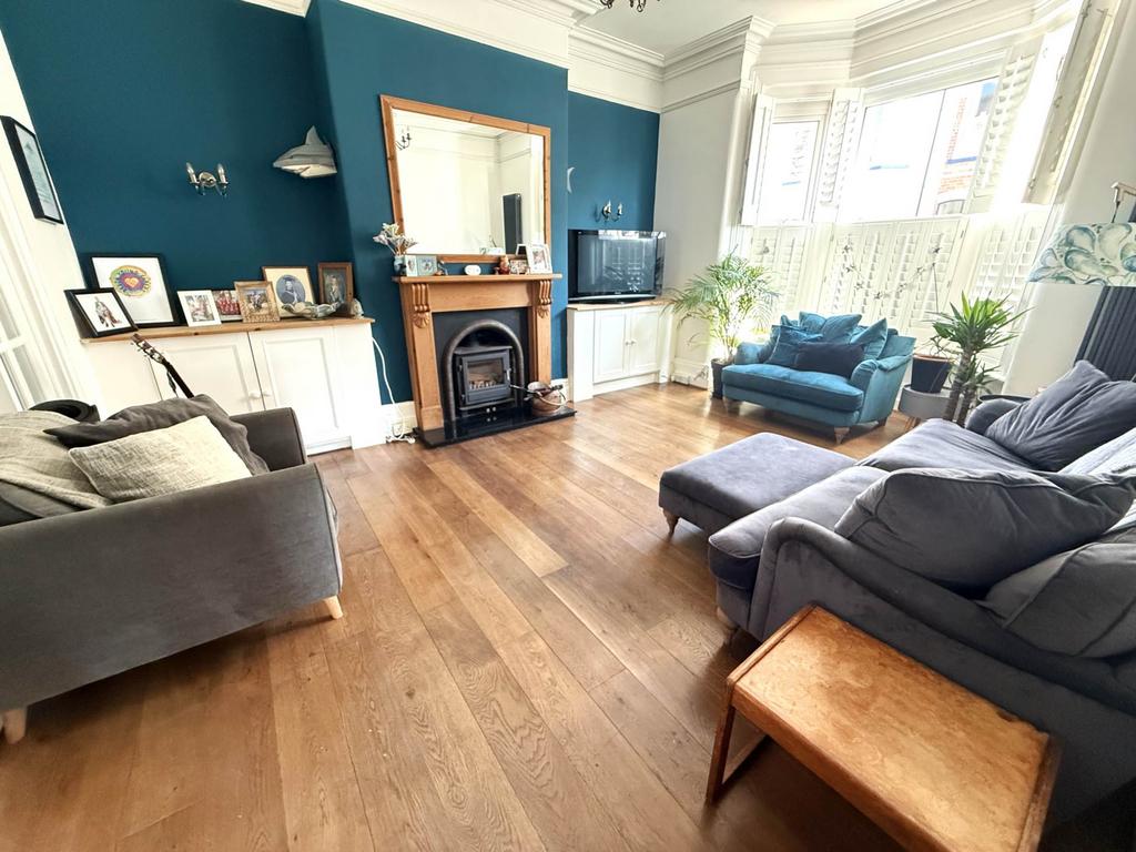 Walk - in uPVC double glazed bay window to front with fitted window shutters. Radiator. Exposed floorboards. Picture rail. Ornate coving. Panelled ceiling.