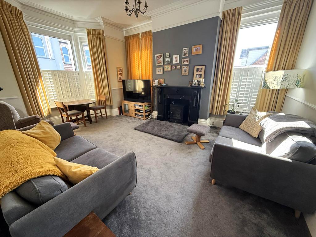 Dual aspect having walk - in uPVC double glazed bay window to front and 2 uPVC double glazed windows to side, all having fitted window shutters. Fireplace feature. Radiator. Dado rail. Picture rail. Ornate coving. Ceiling rose.