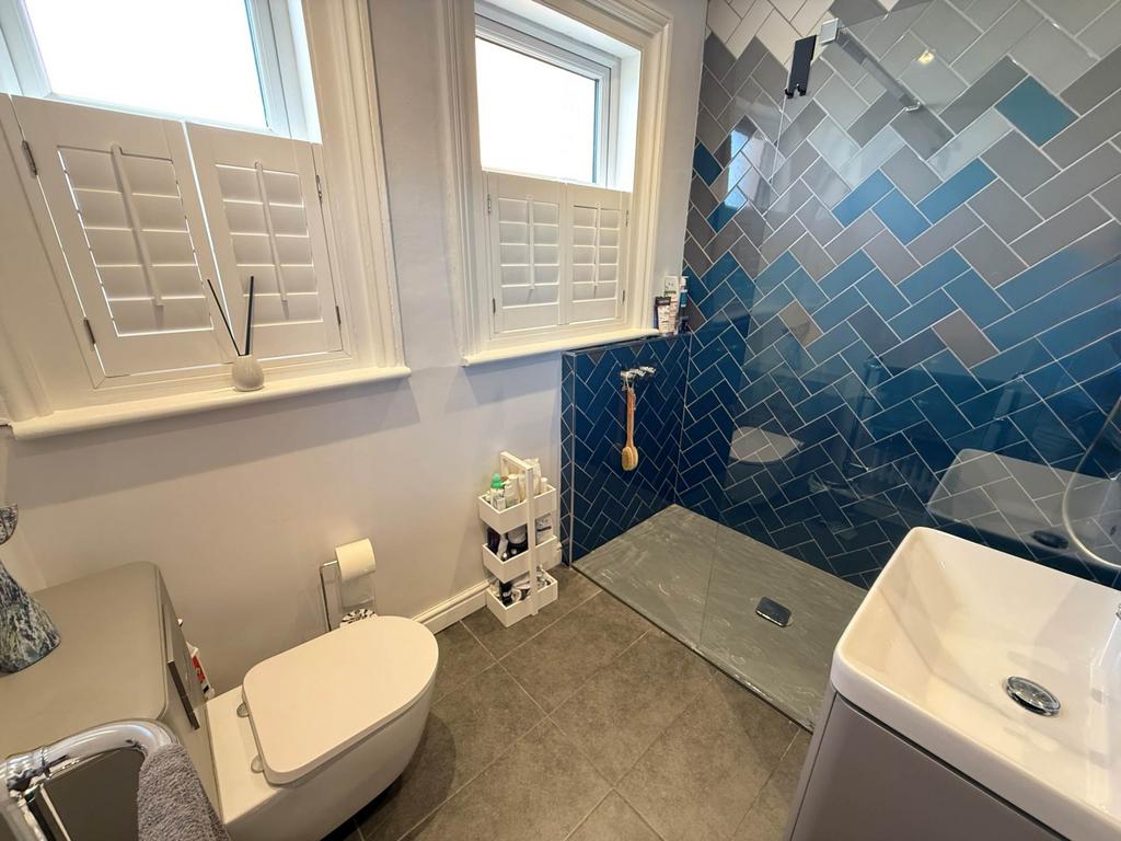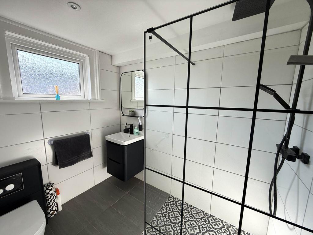 2 obscure uPVC double glazed windows to rear with fitted window shutters. Modern fitted suite of shower tray with thermostatically controlled shower unit over, including rainfall Waterhead and tiling to ceiling height. Low level WC and vanity wash hand basin. Radiator/towel rail. Tiled flooring. Extractor fan.