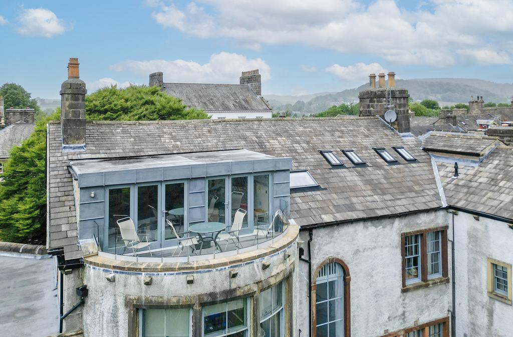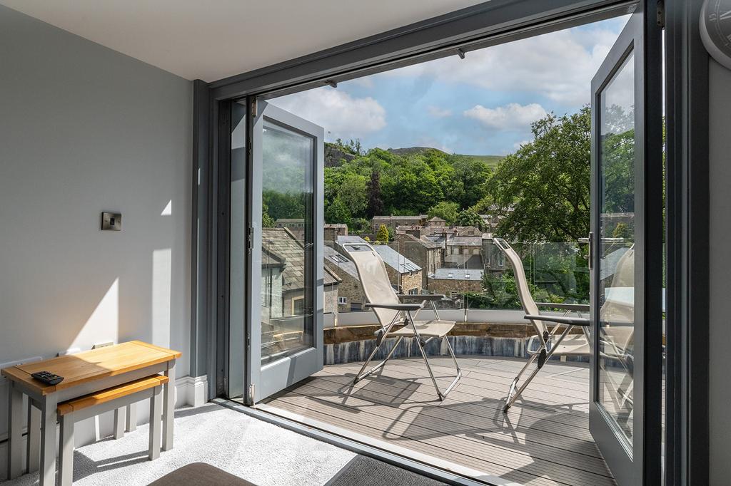 Entrance is via a shared entrance lobby at ground floor level with feature return staircase up to the second floor apartment. Access to principal rooms, large open plan lounge, dining room and kitchen with open ceiling and exposed roof timbers, bi folding doors leading to fantastic balcony having stunning views over Settle towards Castleberg.