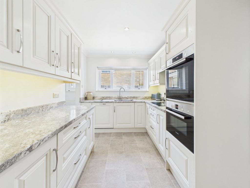 4.15m x 2.41m (13' 7" x 7' 11") Sink unit, floor and wall units, built in oven, hob and microwave, integrated fridge, freezer and dishwasher, extractor hood, plus a double glazed window, and an opening to the utility room
