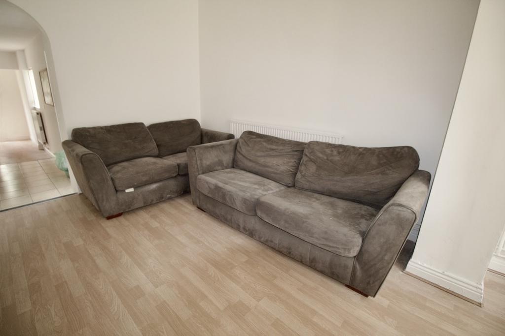 Living Room: Bay fronted, laminate flooring, and fully furnished with three two-seater sofas and lots of light through the uPVC windows.