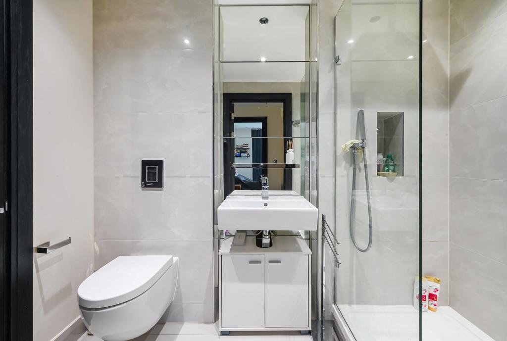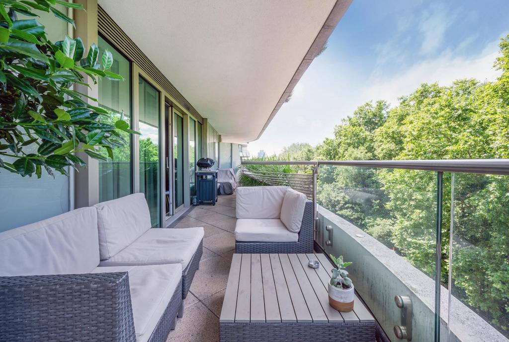 The apartment comprises two generous double bedrooms, including a luxurious principal suite featuring a marble-clad en suite bathroom with a walk-in shower. The spacious open-plan living and kitchen area is ideal for entertaining and opens out onto a private balcony with peaceful views over the adjacent park.