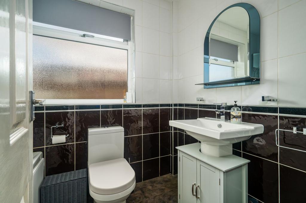 Accessed from bedroom 2 and 3, comprising of a shower cubicle, pedestal wash hand basin and low flush w.c. Having part tiling to the walls, a Velux window, a central heating radiator and a useful fitted storage cupboard.