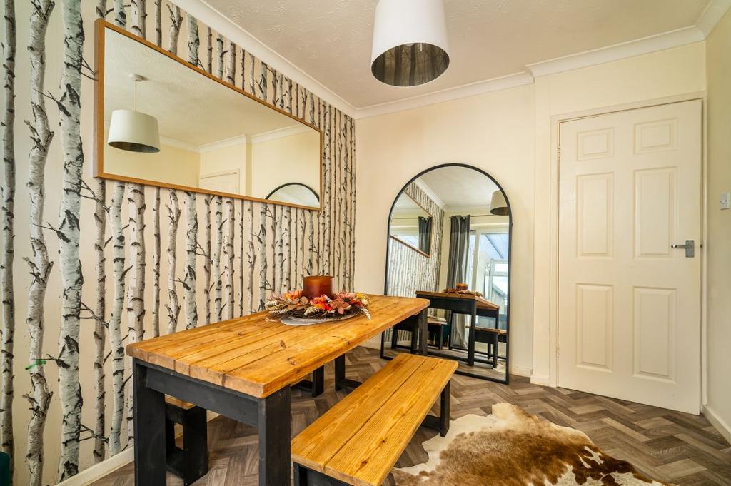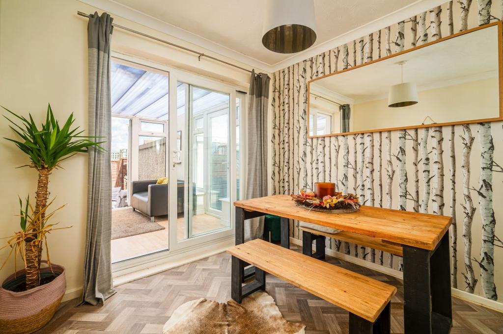 Having Laminate wood flooring, French doors leading out to the rear garden and a door leading out to the side.