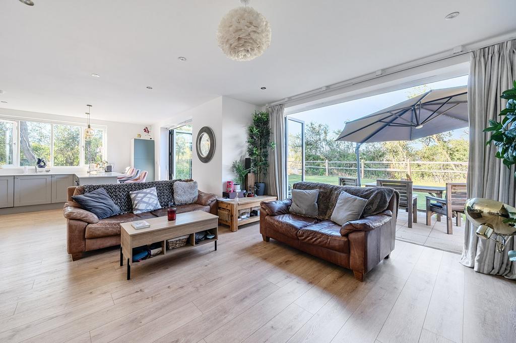 On the borders between Kent and Surrey, close to many areas of natural beauty, Merlin Drive offers a wonderful opportunity to acquire a stunning barn style home in a semi rural location. Surrounded by local farmland and with distant views to the North, Oxted and Edenbridge town provide charming local shops and restaurants supported by both Morrisons and Waitrose supermarkets, both centres just over two miles away. Rail links are excellent connecting to various London termini Oxted and Hurst Green stations.