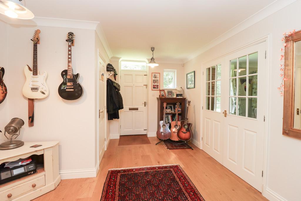 HALL 13'00 x 11'02 (max) window to the front, entrance via secure six panel wooden door from the front driveway and path flanked by box hedging, doors into the principal living spaces of the property, oak flooring extending through into the: