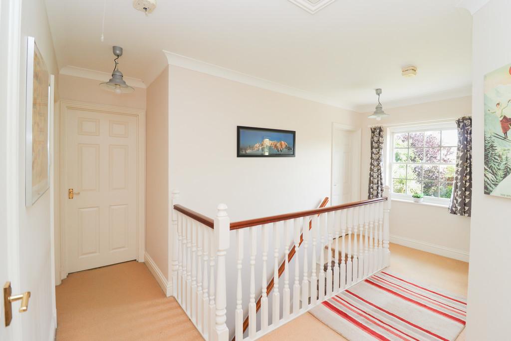 LANDING 14'10 x 11'04 (max), window to the rear overlooking the garden, this spacious landing has doors to all first floor rooms, loft hatch and airing cupboard to the side containing the mains pressure hot water tank. Stairs descend to the ground floor: