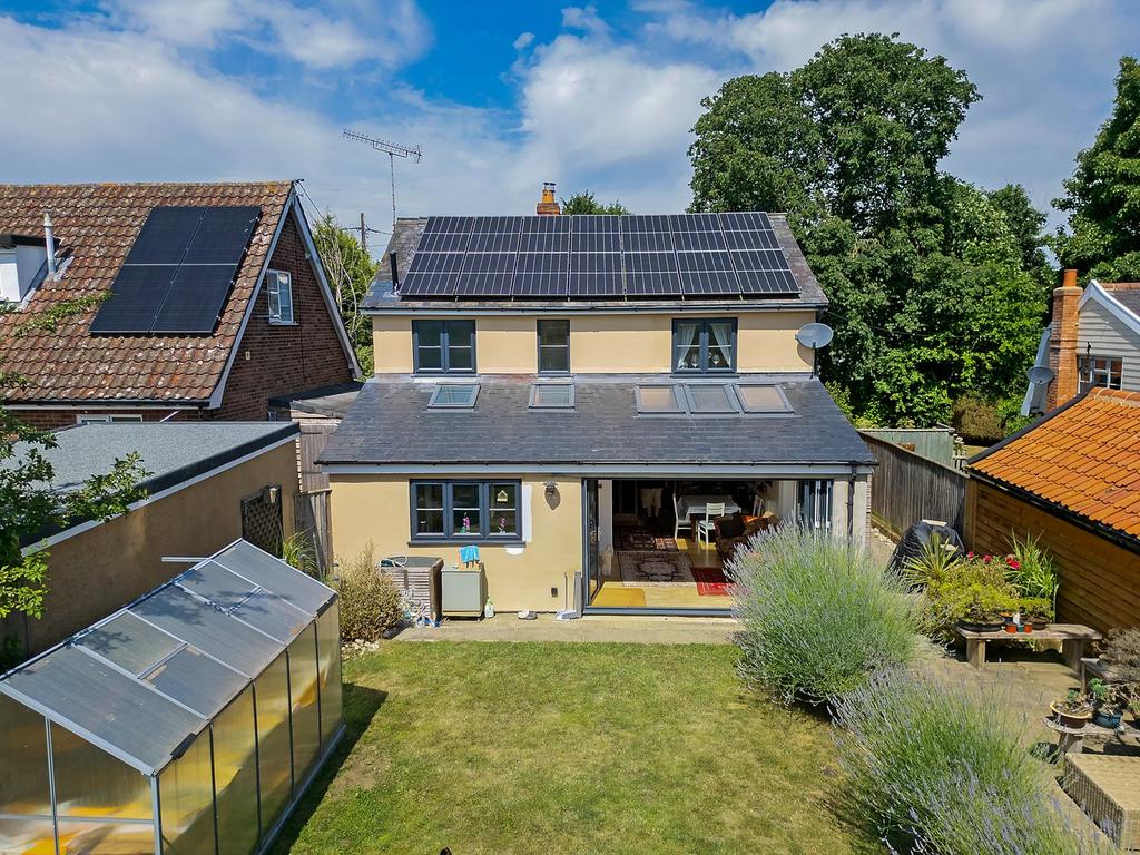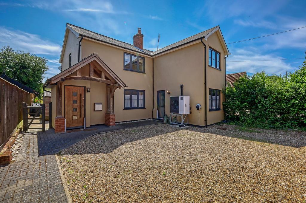 Marks and Mann are delighted to bring to market this THREE DOUBLE BEDROOM Home located in the desirable area of Barking. The house is an old character property, but has been completely and recently updated, so it retains original oak beams, yet has been insulated, had solar panels and air-source heat pump installed, along with 20kw home battery, even an EV charging point. As a result the EPC now exceeds many new builds for efficiency, warmth and running costs. There is a good sized fully enclosed rear garden and has the benefit of a large OUTBUILDING/OFFICE/FIFTH BEDROOM WITH POWER CONNECTED located right above the garage, greenhouse and lavender patch area, patio area for seating, laid to lawn area and FIELD VEIWS FROM THE REAR. The interior of the property is very well presented throughout and offers two floors of spacious living accommodation. There are three double bedrooms with the potential for a FOURTH downstairs, MODERN KITCHEN, MODERN BATHROOM on the first floor, en-suite off the main bedroom, up to three reception areas, GARAGE and there is a good size driveway providing off road parking for four cars. Viewing is HIGHLY RECOMMENDED to appreciate all this property has to offer!!