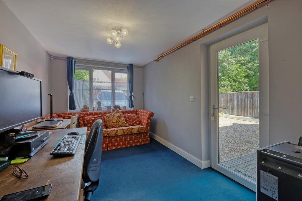 Currently laid out as an office space, this could also be a fourth bedroom to those who require it and would serve as a very large double bedroom with plenty of space for storage units as well. Has been carpeted throughout and has access onto the drive.