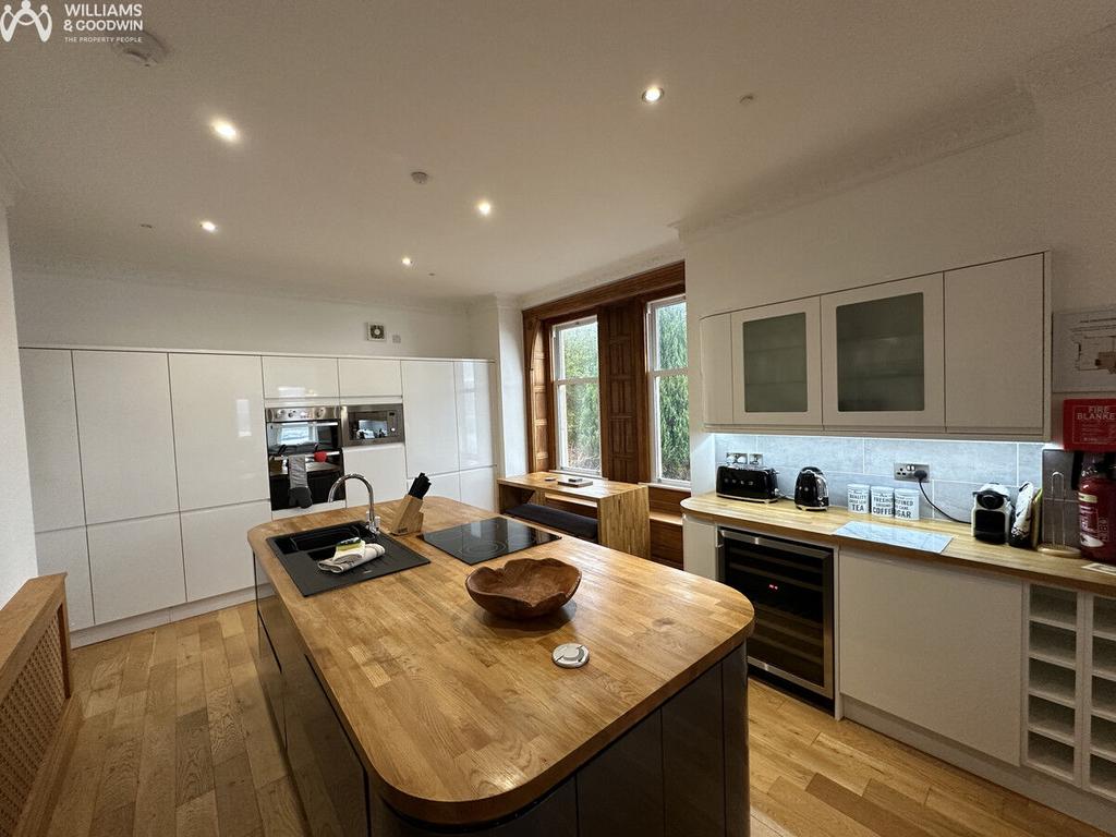 A spacious modern kitchen fitted with a range of fitted units with worktop space over the units. Benefitting from ample storage within the kitchen, the large kitchen island is the focal point in the centre. The kitchen is well equipped with a range of built in appliances such as fridge/freezer, dishwasher and wine cooler.