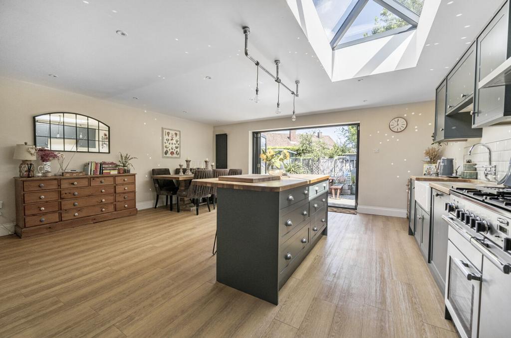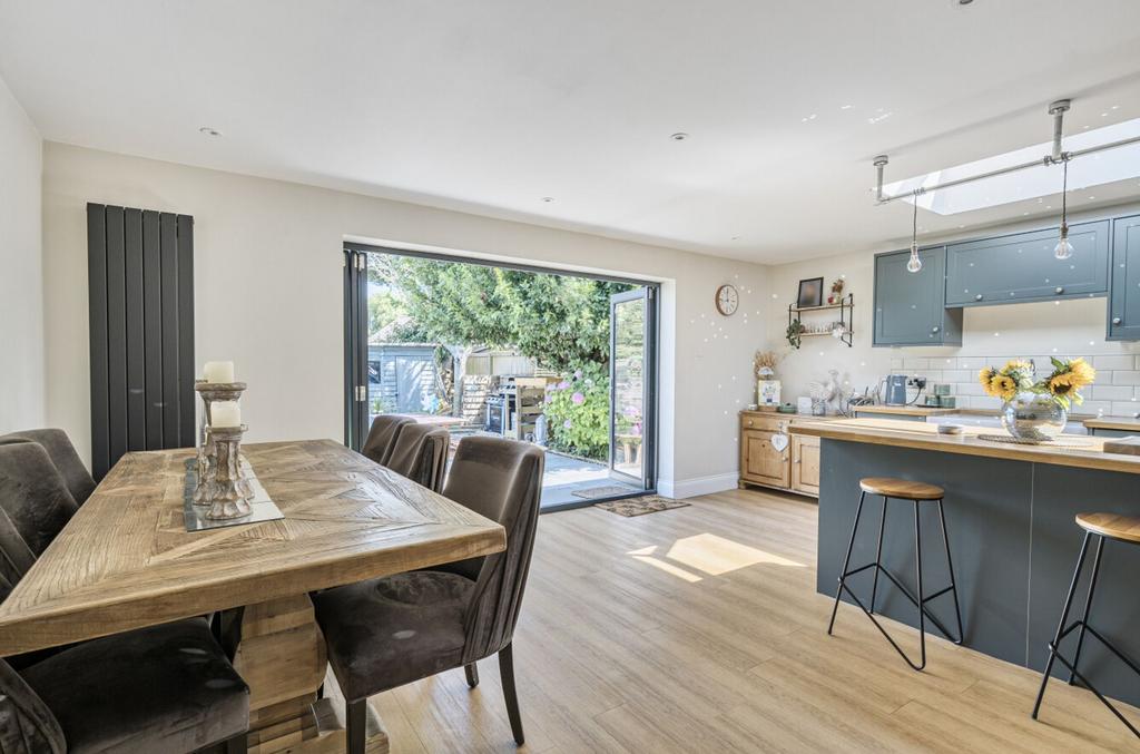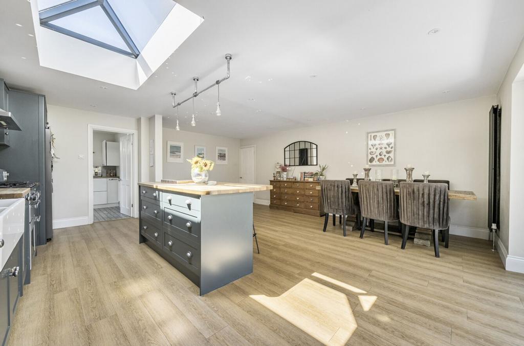 Tucked away in a quiet and sought-after spot in Chidham, is this superbly presented semi-detached bungalow. Boasting two generous double bedrooms and a large contemporary bathroom complete with both a bath and a separate shower. The heart of the home is the impressive open-plan kitchen, dining, and family room – a perfect space for everyday living and entertaining alike. The modern kitchen features a central island and is bathed in natural light from the striking sky lantern overhead. A handy utility room is tucked just off the kitchen for added convenience. Additionally, the property features a separate living room complete with a charming log burner.