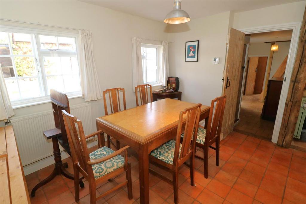 Lounge/Dining Room - 7.68m x 4.65m (25'2" x 15'3") - With dual aspect windows and french doors to the rear. Tiled and oak flooring. Wall mounted gas fire and a radiator. Partial wood panelling to walls and exposed beams. The dining area has a table with five chairs and a corner cabinet whilst the lounge has two sofas, occasional tables and chairs.