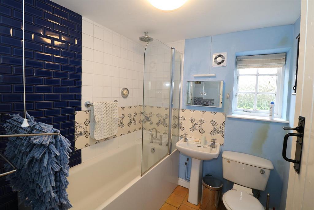 Bathroom - With tiled floor and splashbacks. The suite comprises a panelled bath with a rainfall thermostatic shower, close coupled wc and a pedestal wash hand basin. Frosted window to the rear and a radiator .