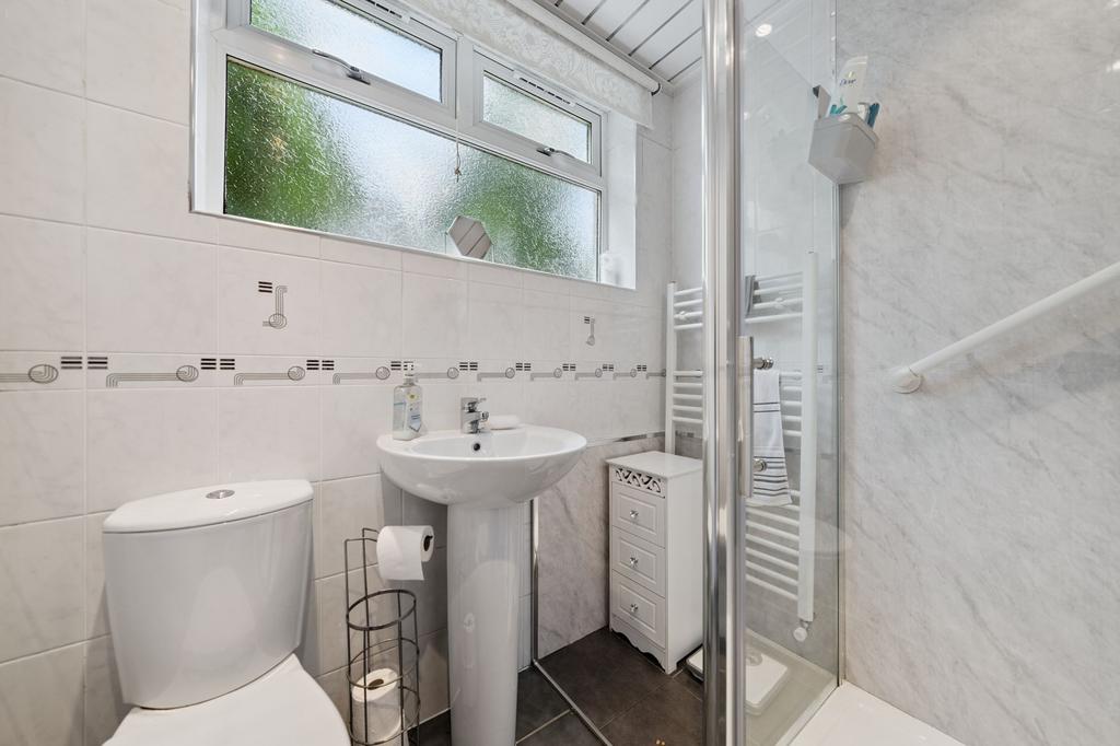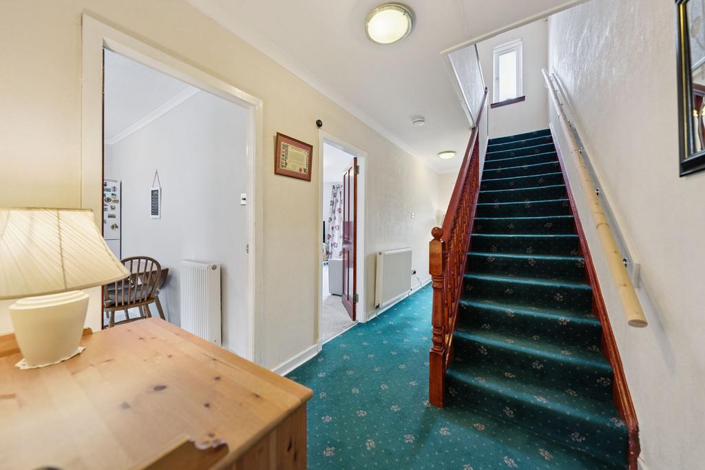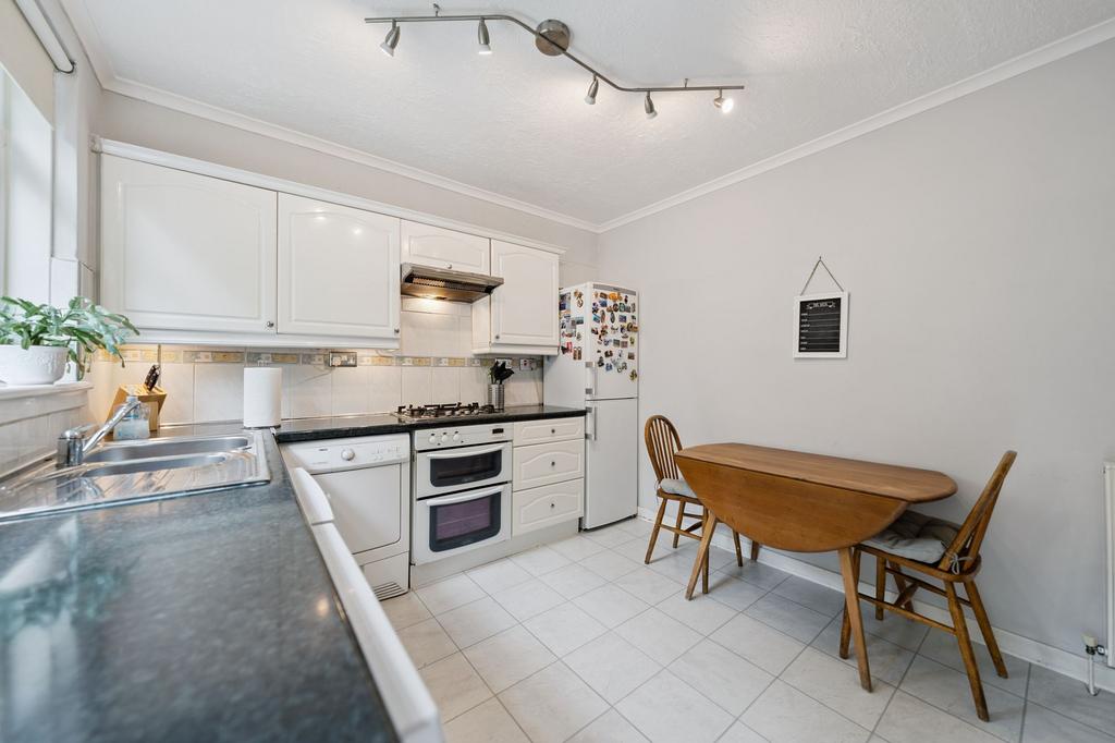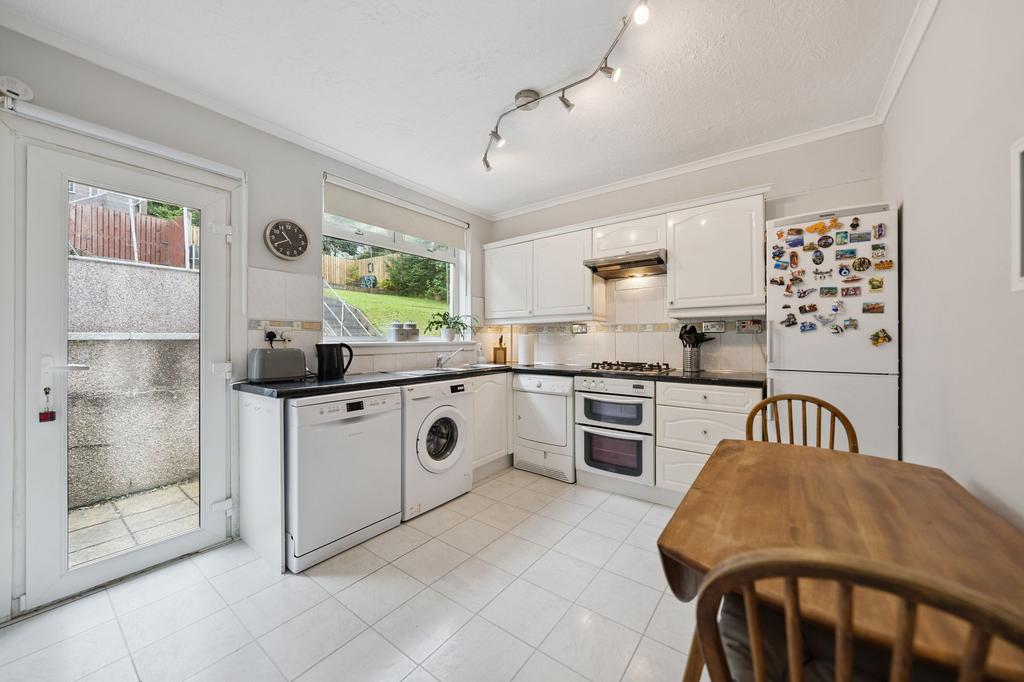 The property welcomes you with a bright and airy reception hallway, featuring a generous under-stair storage cupboard. To the front, you will find a well proportioned living room complete with a gas fireplace. To the rear, a spacious dining kitchen provides a range of base and wall-mounted units, ample room for dining, and direct access to the private rear garden, ideal for entertaining or family life. Completing the ground floor is a well-appointed family bathroom comprising a three-piece suite with shower enclosure.
