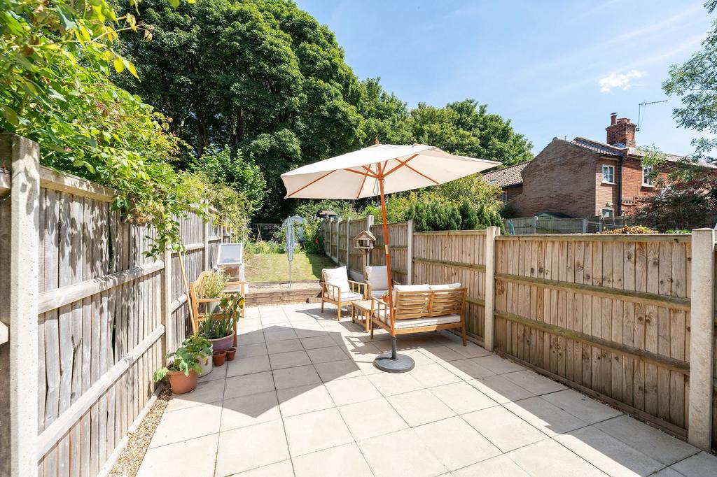 Outside, the cottage garden is a real treat, a true suntrap throughout the day. A generous patio area is perfect for outdoor dining, while a long stretch of lawn provides plenty of space to enjoy the outdoors, plant borders, or simply sit and soak up the sun.