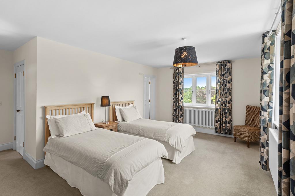 On the first floor, the principal bedroom and principal guest bedroom each have beautifully finished, fully tiled ensuite shower rooms. There are two further double bedrooms and a stunning family bathroom with a tear-shaped bath. Vaulted ceilings and clever use of space create layers of interest for displaying art and furniture. Beautiful wool carpets and meticulous attention to detail provide an exceptional standard of design and build, with underfloor heating in the bathrooms.